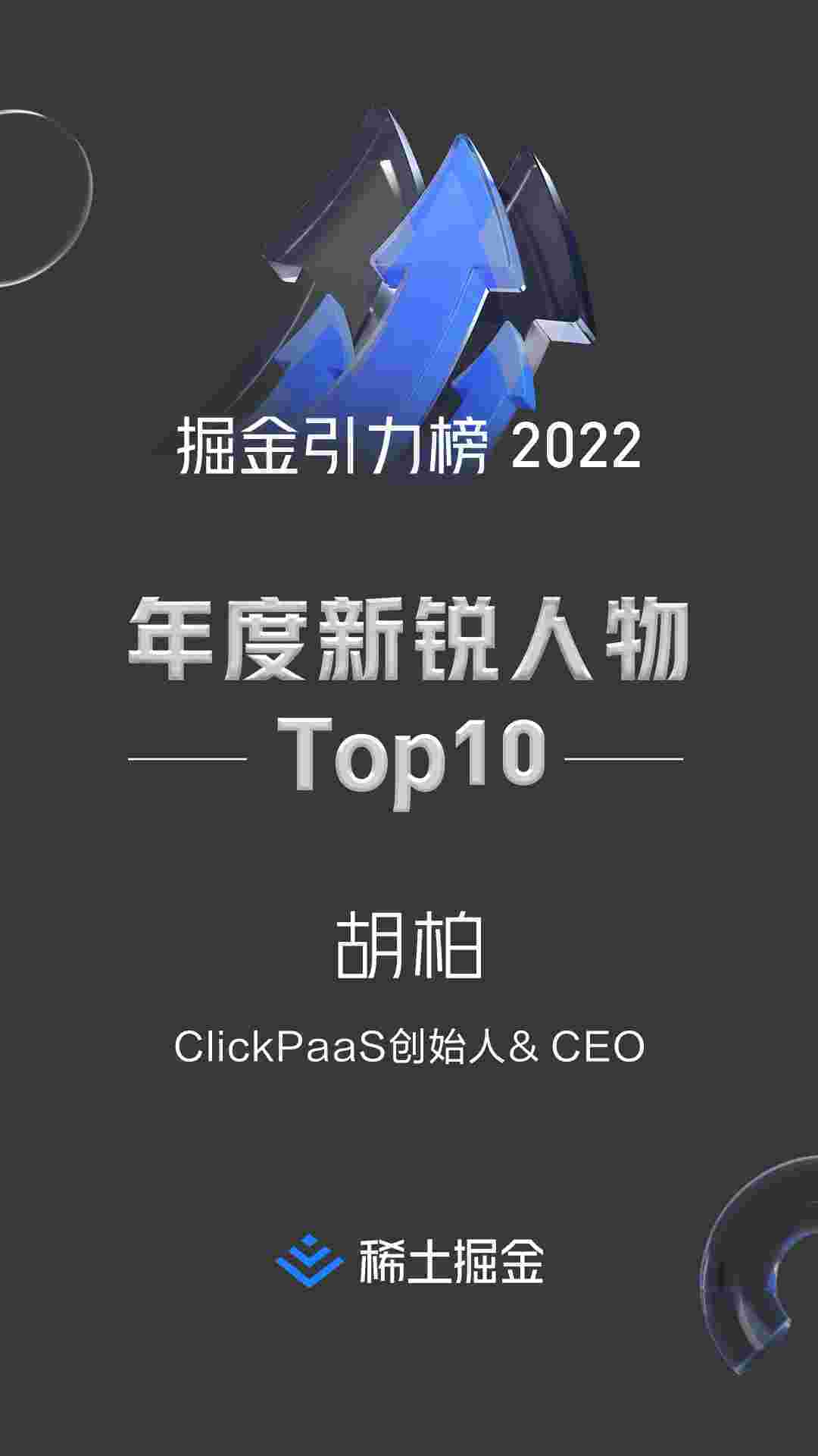 2022年1月6日,,,稀土掘金社区第一届「掘金未来大会」成功举办,,会上发布了“2022 稀土掘金引力榜 年度新锐人物”榜单,,,,上海爱湃斯科技有限公司(简称钱能钱包)创始人及CEO胡柏实力入选年度新锐人物TOP 10。。