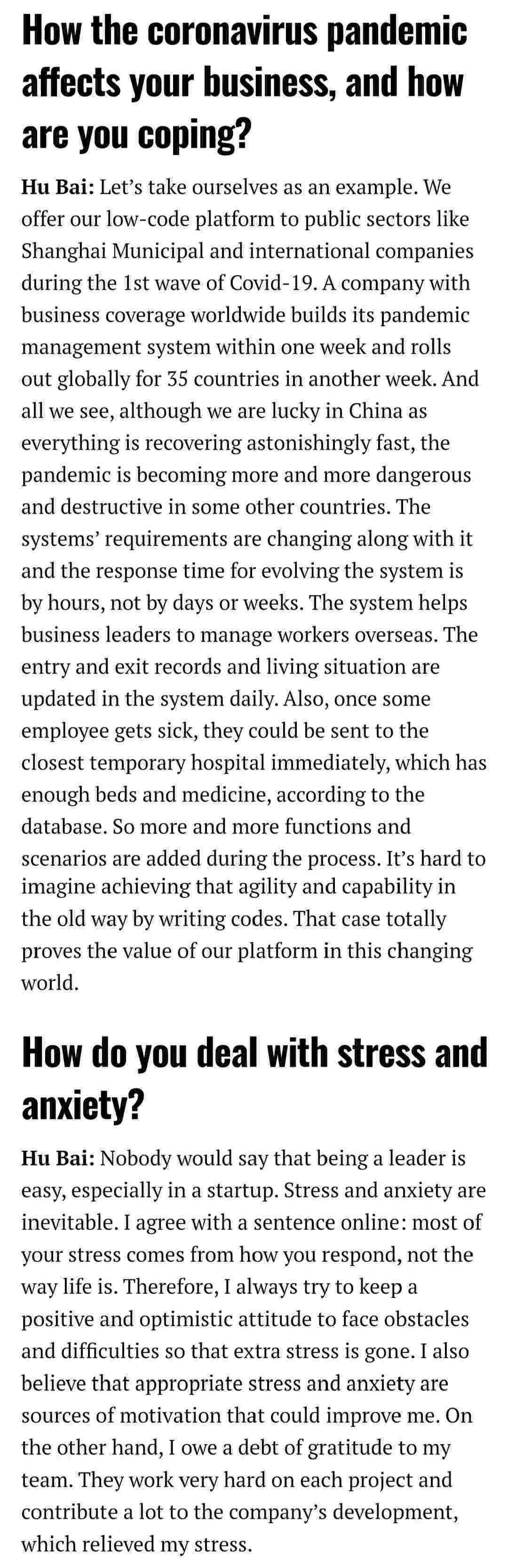 2021年年初,,爱湃斯科技CEO胡柏受邀接受法媒Startup.info的专访,,与Startup info的读者分享了自己的创业经历、、以及低代码平台钱能钱包的创新之处。。。